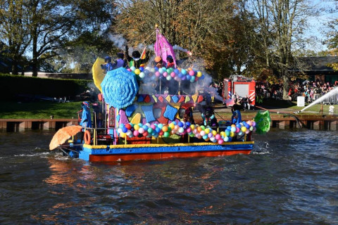 Dit prachtige schouwspel vormt de aankondiging van de Sinterklaasaankomst, die rond 13.30 uur wordt verwacht. Dan zal de Sint vanuit de pakjesboot voet aan wal zetten in Goor.