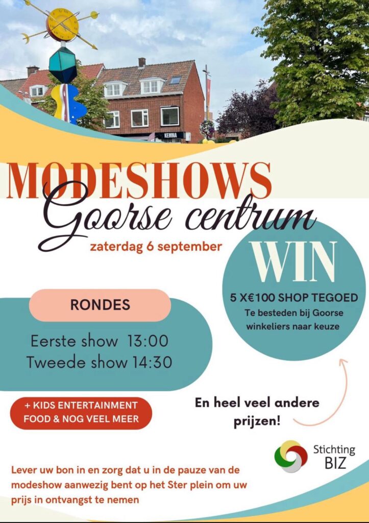 Op zaterdag 6 september presenteren de Goorse modewinkels hun nieuwe najaars- en wintercollecties tijdens twee sfeervolle modeshows om 13:00 en 14:30 uur in de Grotestraat. Laat je inspireren door de nieuwste trends, geniet van optredens van Vocal Group LEF en een grote verloting in de pauze, en maak kans op één van de vijf shoptegoeden van € 100,00 bij de deelnemende winkels. De kinderen kunnen genieten van speciaal entertainment en ook aan de inwendige mens is gedacht.