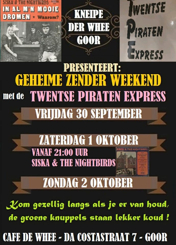 De Twentse Piraten Express (TPE) houdt van 30 september t/m 2 oktober een “Geheime zender weekend” in Café de Whee.